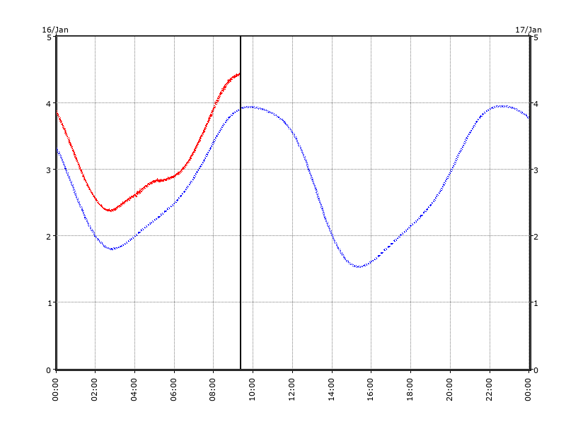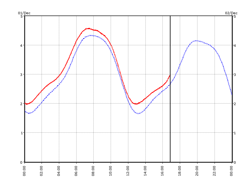 First reading starts at 0000Hrs GMT. Read Across. Readings are Centimetres above Chart Datum (CD). Dates/Times are in UTC.