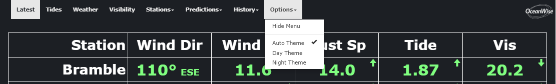 Here, Night View or Day View can be selected, changing the appearance of the web pages. Auto Theme is selected as default and will automatically switch between Day Theme and Night Theme at sunset/sunrise.
